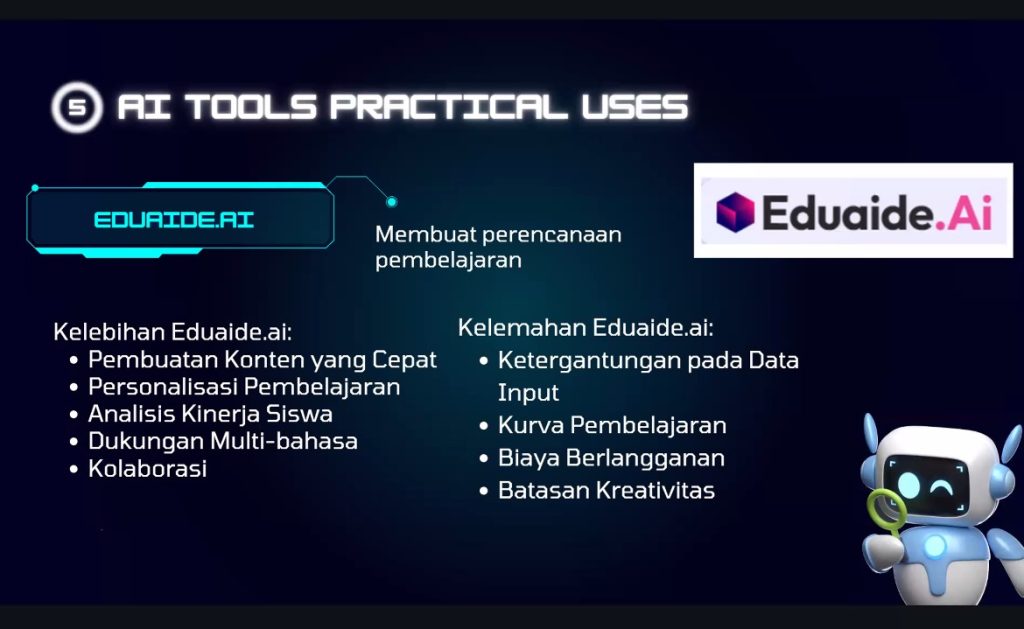 Dengan adanya diskusi seperti ini, diharapkan para pendidik di Indonesia semakin siap untuk menyongsong masa depan pendidikan yang lebih canggih dan inklusif, di mana teknologi seperti AI menjadi bagian integral dari proses pembelajaran.